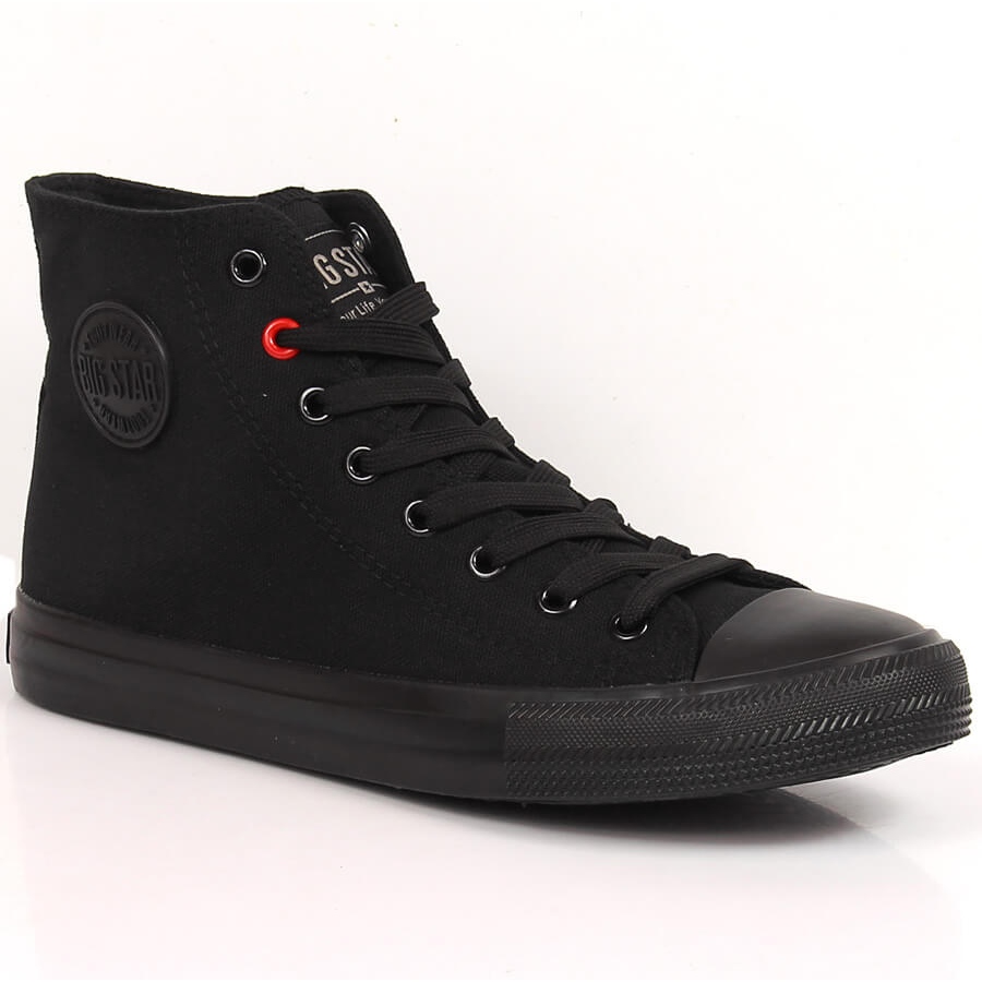 Big Star T274033 Sneakers - klasika v černé barvě, která jde se vším. Vysoké, černé tenisky s univerzálním, absolutním koutským dokonalým na jaře a na podzim. Pohodlná podšívka a vložení látky a pevná, 2,5 cm syntetická podešve zajišťují lehkost a každodenní pohodlí.