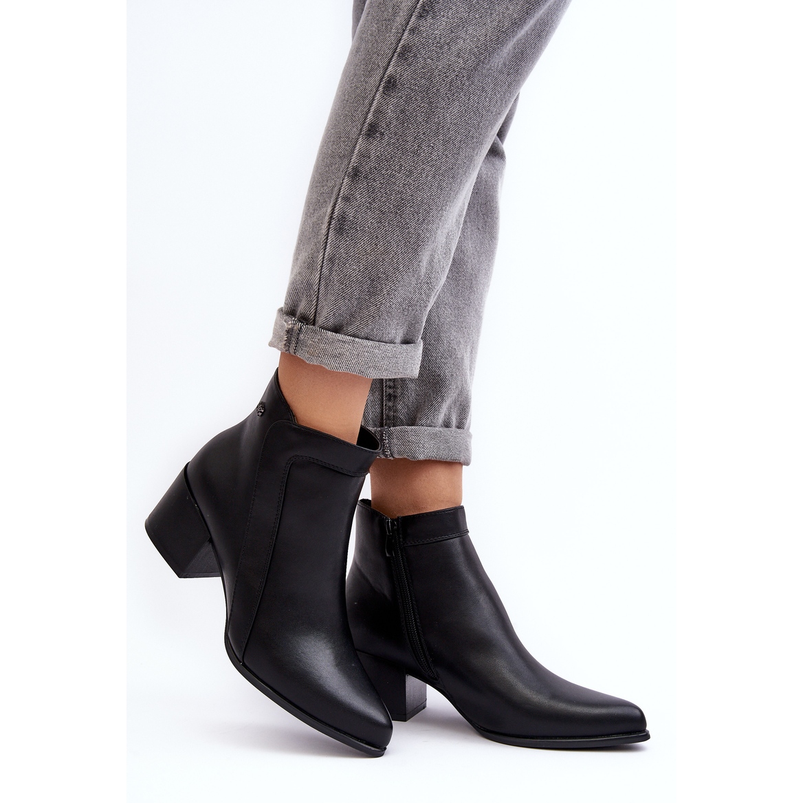 - Modelka: Kožené kotníkové boty na nízkém podpatku