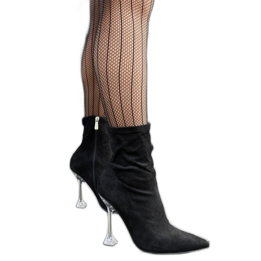 Černé kotníkové boty Ferguson s ozdobným podpatkem černý