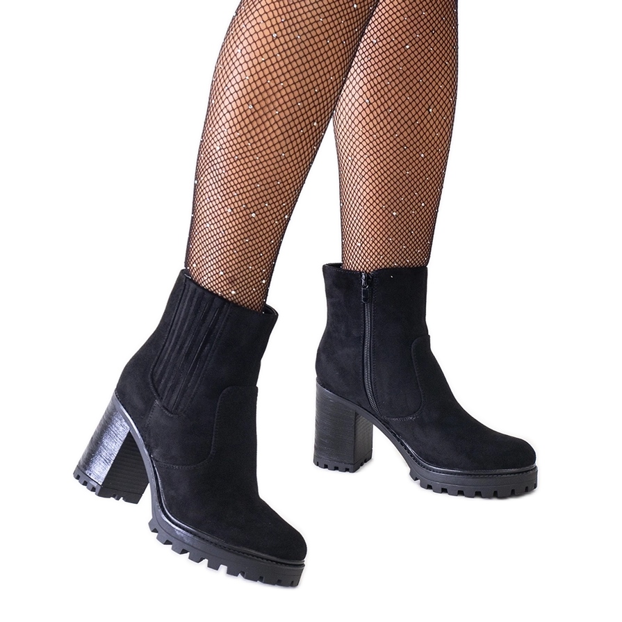 Inna marka Černé kotníkové boty na masivním vysokém podpatku, eko-semiš Dunyana černá
