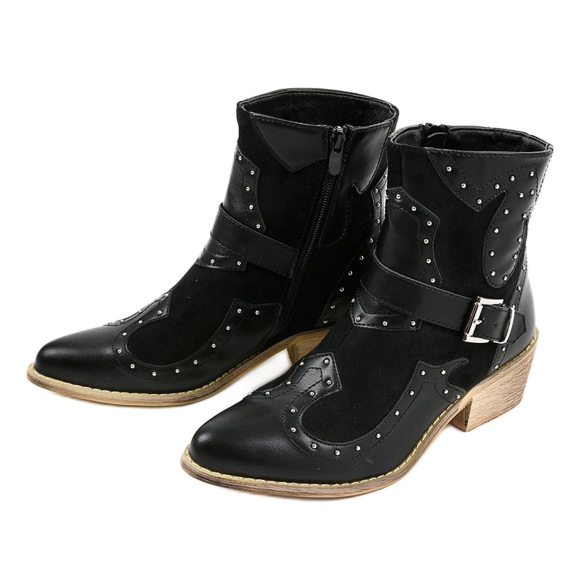 Černé kovbojské boty 88113 jsou perfektní volbou pro ženy, které chtějí spojit pohodlí s módním stylem. Tyto kotníkové boty vyrobené z vysoce kvalitní ekologické kůže vypadají nejen elegantně, ale jsou také ekologické. Charakteristický 5 cm vysoký dřevěný podpatek zajišťuje stabilitu a pohodlí po celý den.