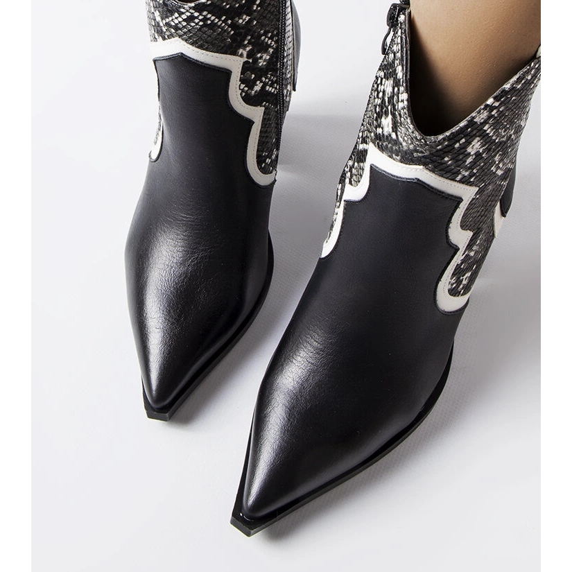Elegantní, izolované ženské boty s moderním charakterem - ideální pro sezónu podzimních. Klasická černá s bílým přízvukem a jemným vzorem zvířat přidává postavu a stabilní post 9 cm vysoká zajišťuje nošení pohodlí.