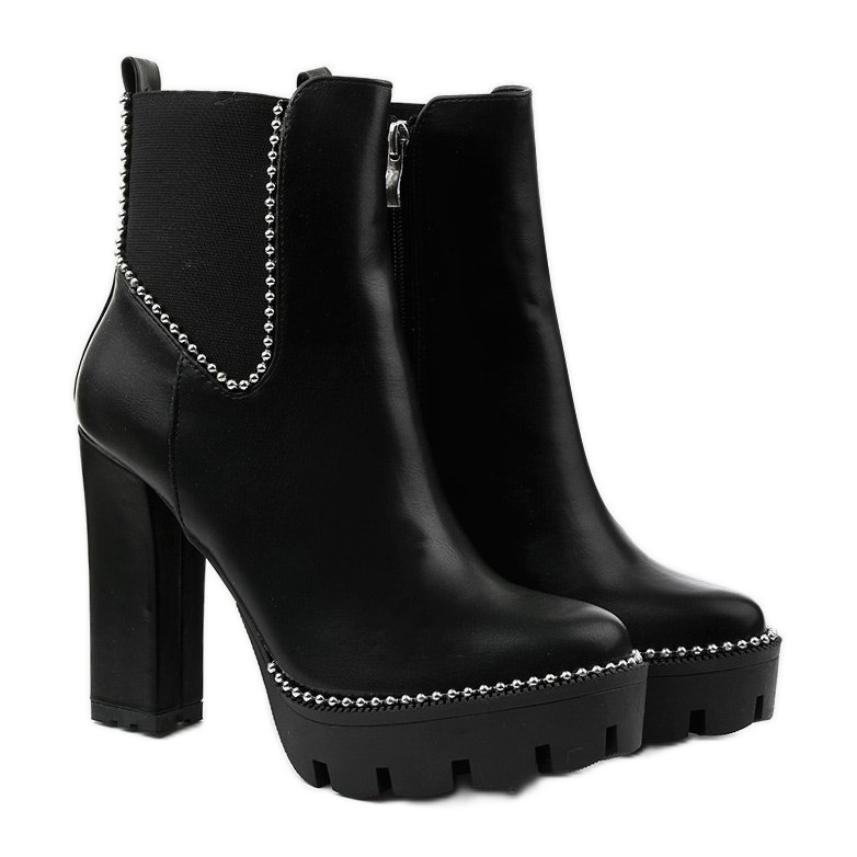 Kamínky a cvočky jsou zajímavé akcenty, které upoutají pozornost a dodají botám charakter. Zapínání na zip velmi usnadňuje obouvání a vyzouvání.