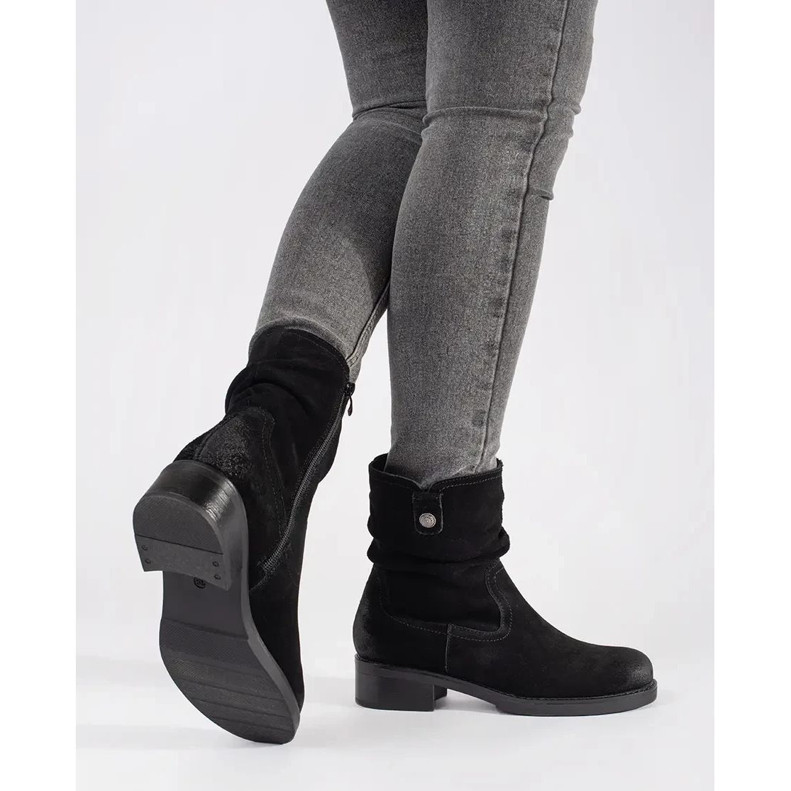Objevte eleganci a pohodlí v jednom - Černé boty s krmivaným svrškem od Sergio Leone je úžasný návrh pro ženy, které si cení stylu a praktičnosti. Tyto boty jsou vyrobeny z vysoce kvalitní semišové kůže, kombinují klasiku a moderní akcenty, což z nich činí perfektní pro každodenní i formálnější stylizace.