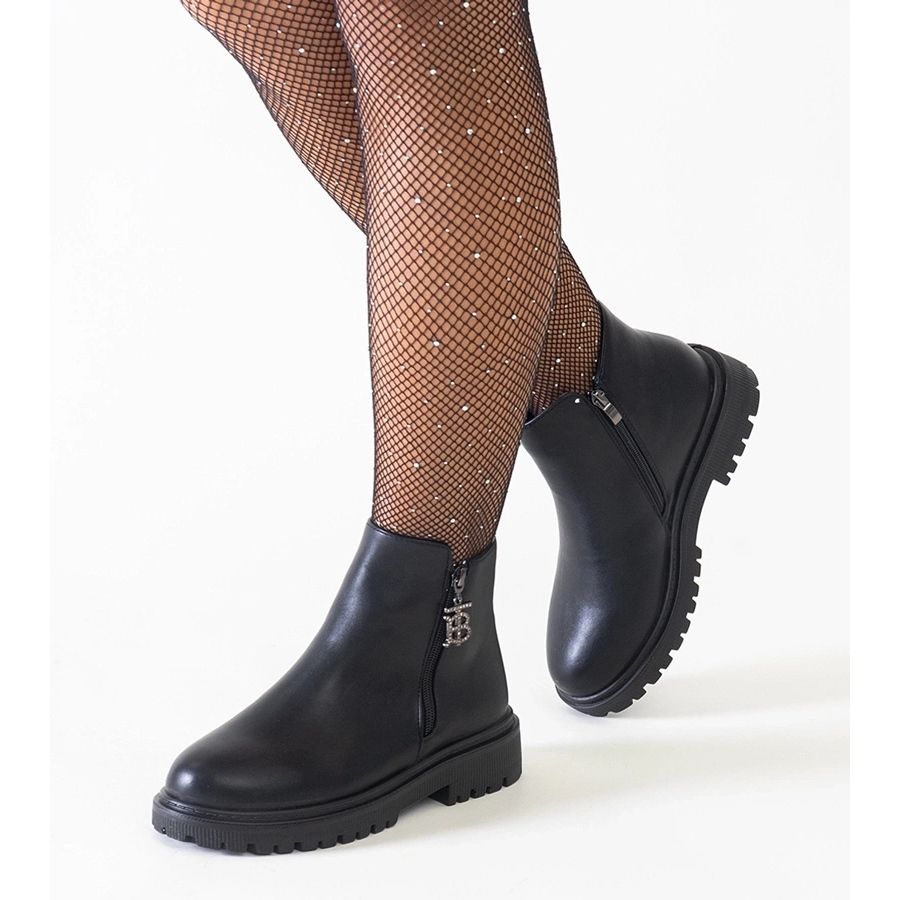 Inna marka Černé kotníkové boty s ozdobným přívěskem na platformě z ekokůže Melane černá