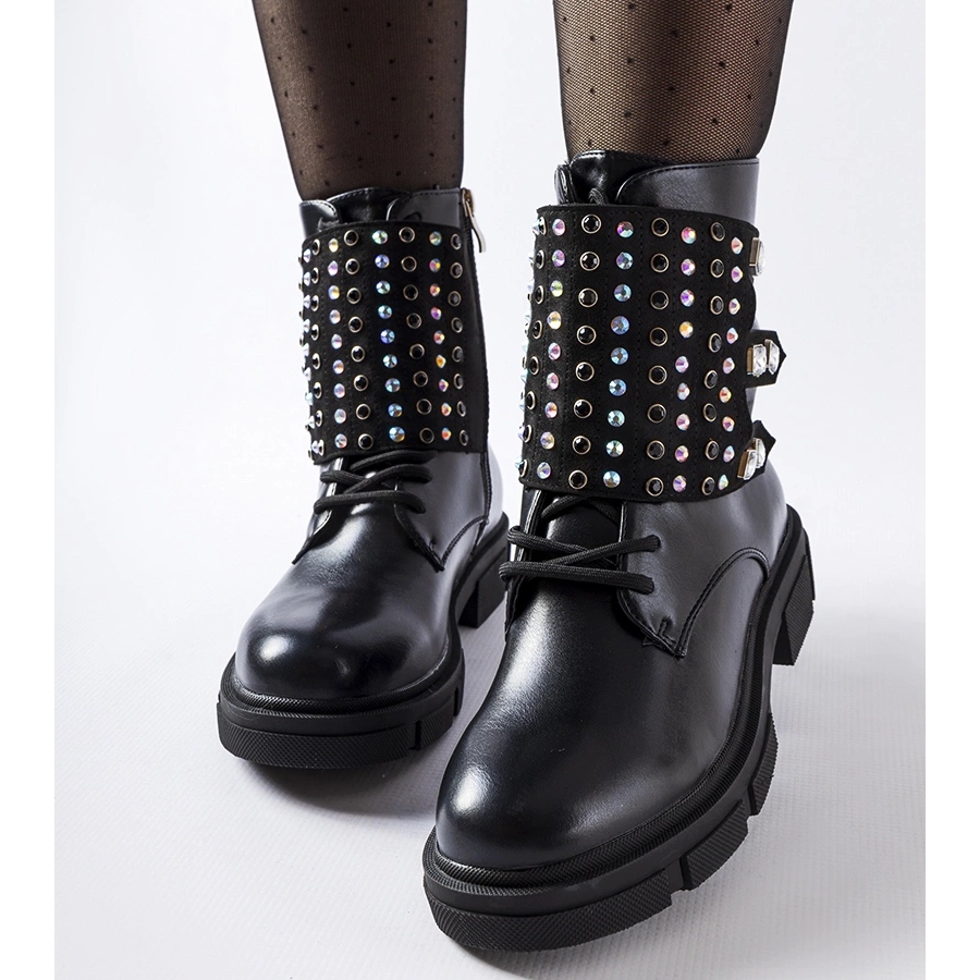 Černé boty zdobené zirkony Cento - elegance a pohodlí každý den