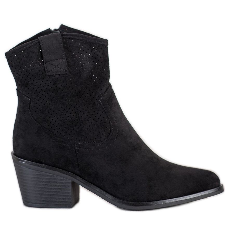 Tyto kovbojské boty vyrobené z vysoce kvalitní ekologické semišové kůže kombinují eleganci a pohodlí. Pohodlný boční zip usnadňuje nazouvání a 6 cm vysoký podpatek v podobě kvádru krásně zeštíhluje nohy a dodává siluetě lehkost. S jejich pomocí můžete vytvořit jak ležérní, každodenní sady, tak styly pro večerní výlety.