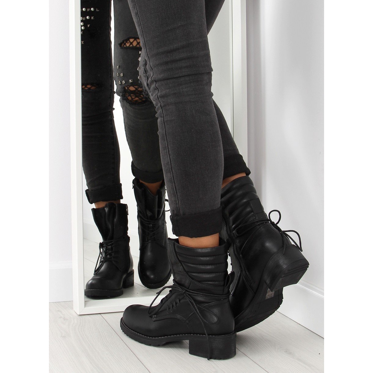 Objevte svou divokost s černými botami 9560! Tyto jedinečné dámské kozačky kombinují eleganci a vojenský styl. Vyrobeny z vysoce kvalitní masité ekologické kůže, zajišťují odolnost a komfort nošení. Pevná podrážka a široký 4 cm vysoký podpatek zaručují stabilitu na každém kroku.