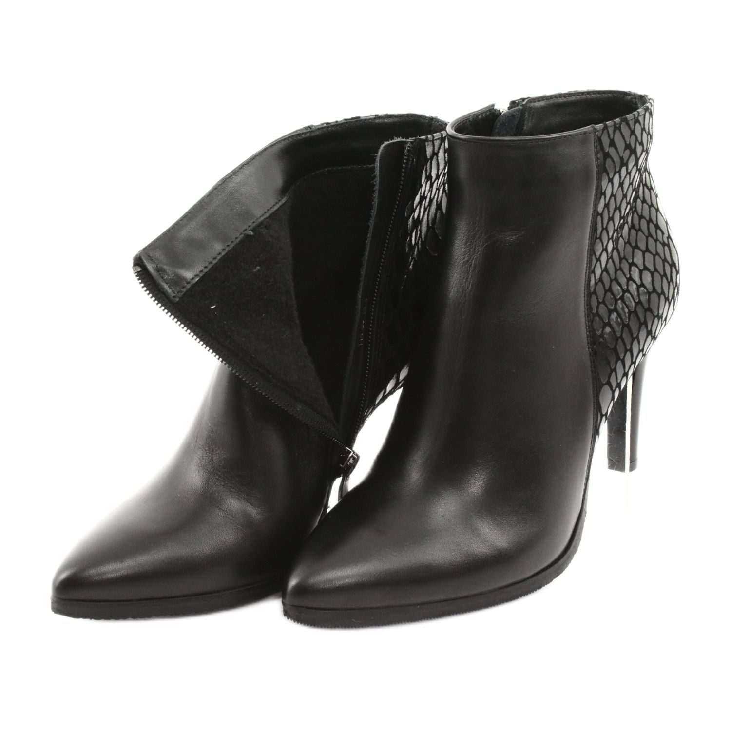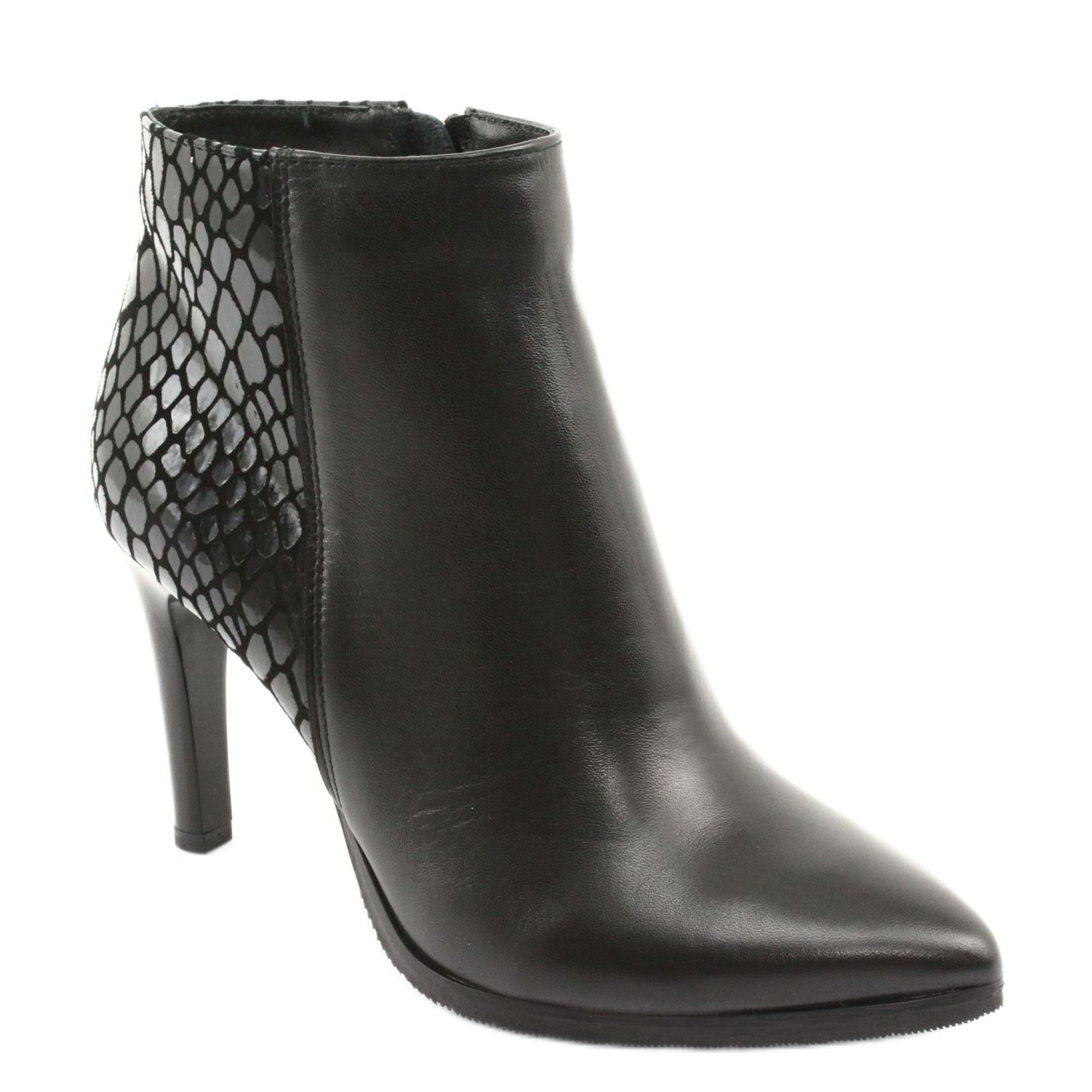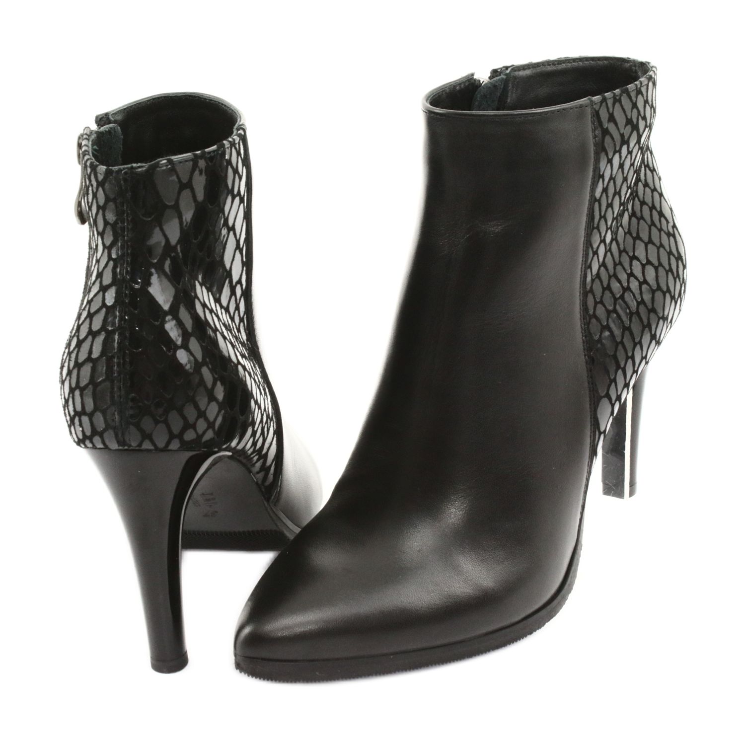 Černé kotníkové boty Espinto na vysokém podpatku jsou perfektní volbou pro ženy, které chtějí spojit eleganci s pohodlím. Model 118 je vyroben z vysoce kvalitní přírodní lícové kůže, díky které jsou boty nejen stylové, ale také odolné. Černý lakovaný povrch jim dodává jedinečný lesk a díky jejich univerzální barvě se perfektně hodí k různým stylům - jak na každý den, tak na zvláštní příležitosti.