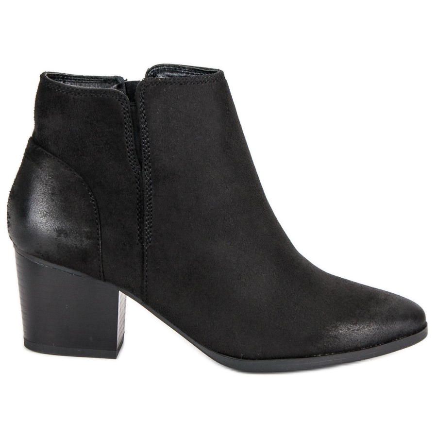Černé kotníkové boty Bobo na vysokém podpatku jsou perfektní volbou pro každou módní ženu, která si cení elegance a pohodlí. Tyto stylové boty vyrobené z vysoce kvalitního ekologického semiše dokonale zapadají do trendů podzimní a zimní sezóny. Díky jejich klasické černé barvě se hodí k mnoha stylům, jak pro každodenní použití, tak pro večerní výlety.
