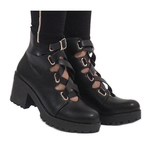 Tyto boty vyrobené z vysoce kvalitní ekologické kůže vám poskytnou pohodlí a odolnost po dlouhou dobu. Kulatá špička a zapínání na přezku jim dodává jemný půvab a díky výšce kotníku (18 cm) jsou ideální pro každé roční období. Černé kotníkové boty na vysokém podpatku o výšce 7 cm, s blokovým podpatkem, zaručují stabilitu a komfort nošení i po dlouhou dobu.