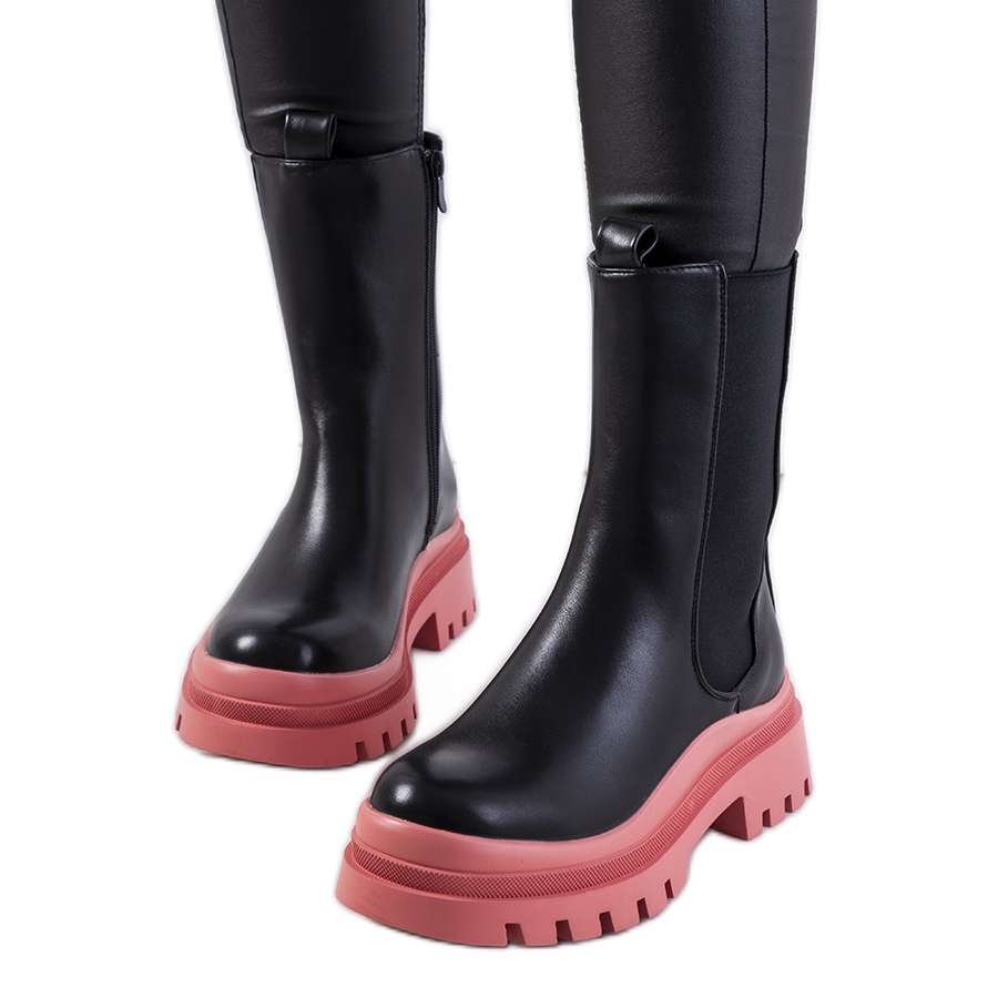 Černé kozačky na růžové platformě Ruket černý