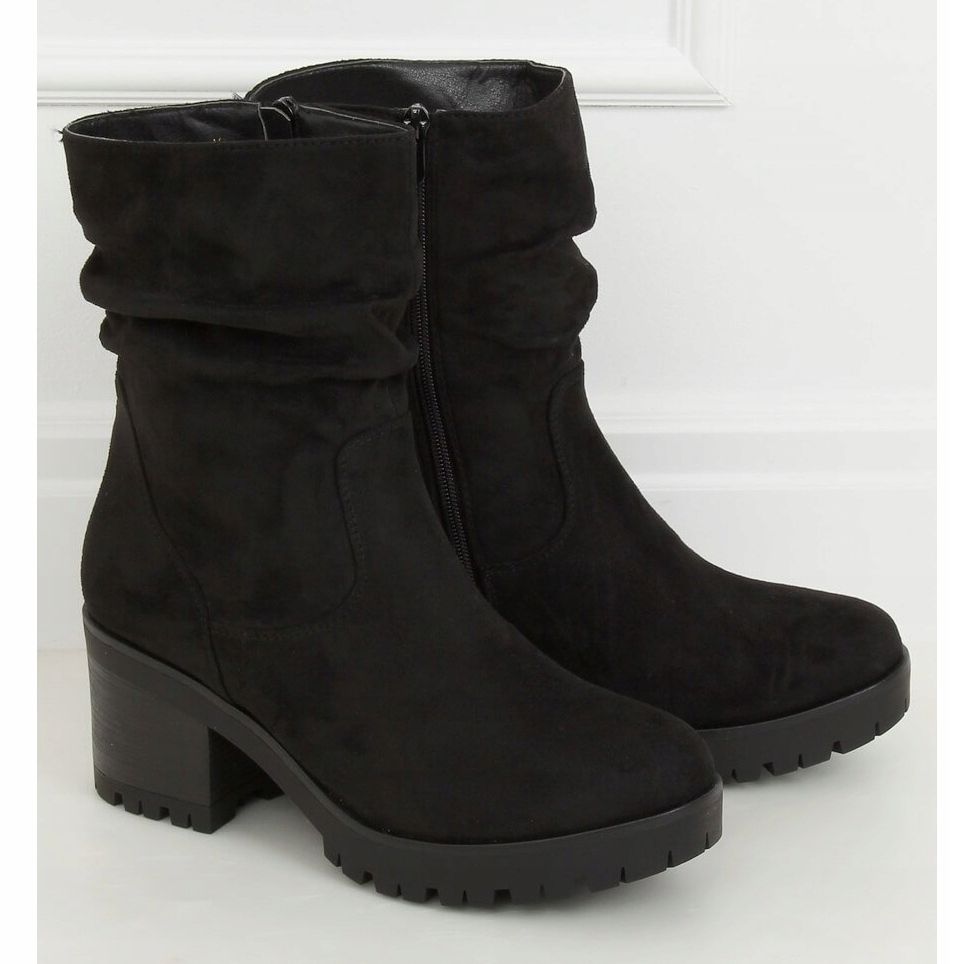 Inna marka Černé kozačky na širokém podpatku J19-96 Black černá