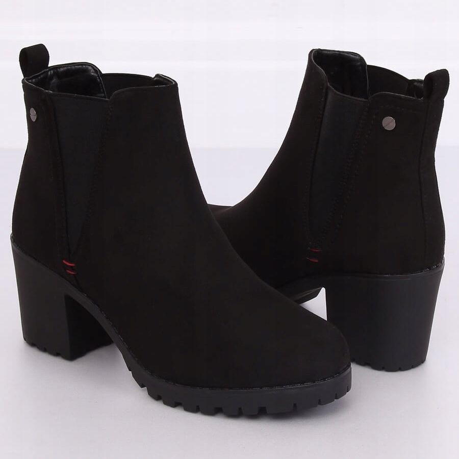 Inna marka Černé kozačky na širokých podpatcích W373 Black černá