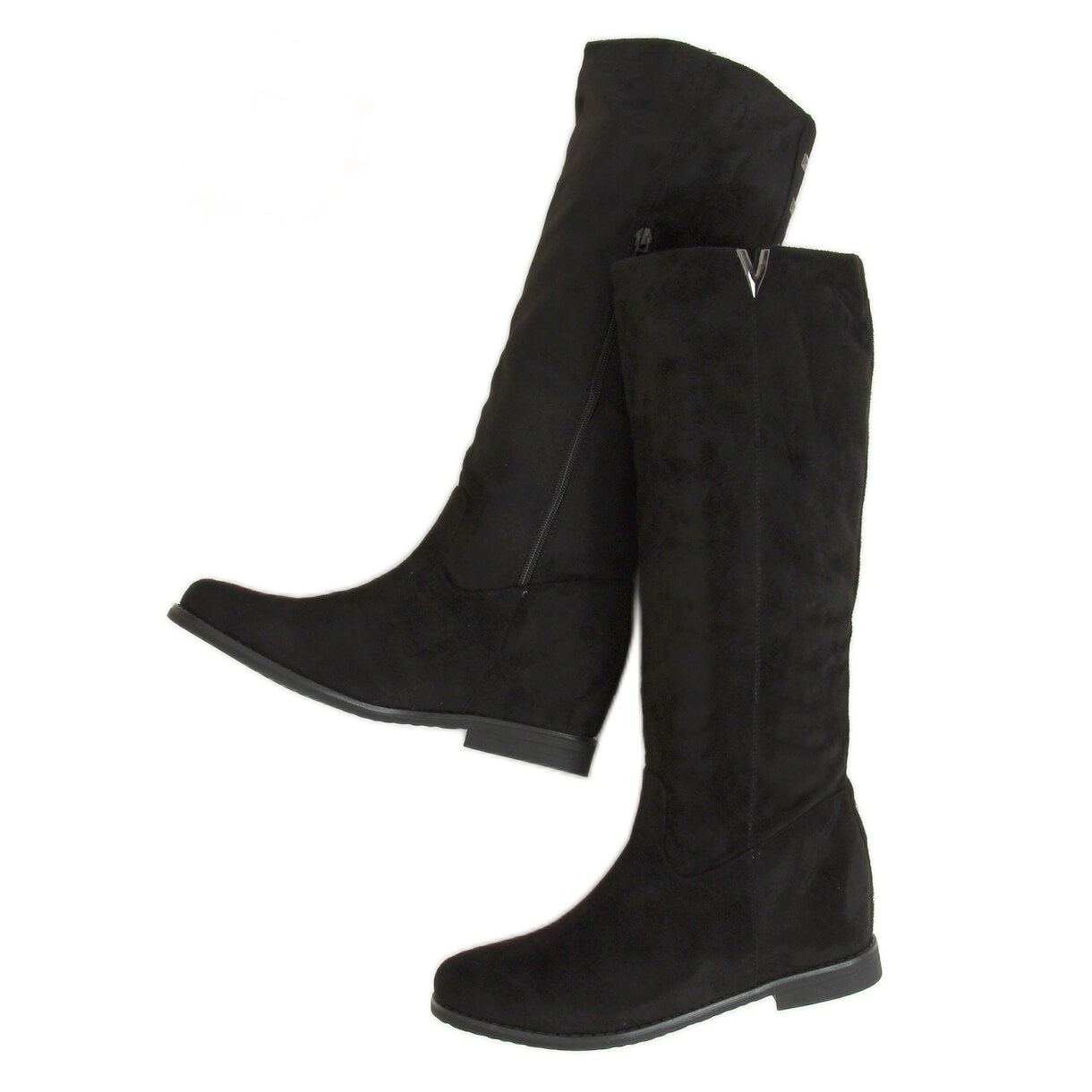 Černé kozačky na skryté klínové patě ST-11P Black černý