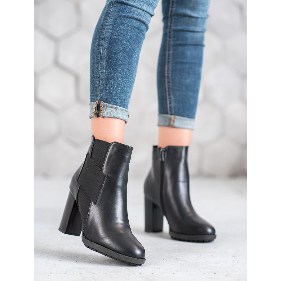Černé kotníkové boty na vysokém podpatku od Kylie jsou perfektní volbou jak na každodenní výlety, tak na elegantní večery. Vyrobeny z vysoce kvalitní ekologické kůže a textilního materiálu, spojují třídu a moderní styl. Jejich minimalistický design je činí všestrannými a lze je snadno sladit s různými styly – od ležérních až po elegantnější.