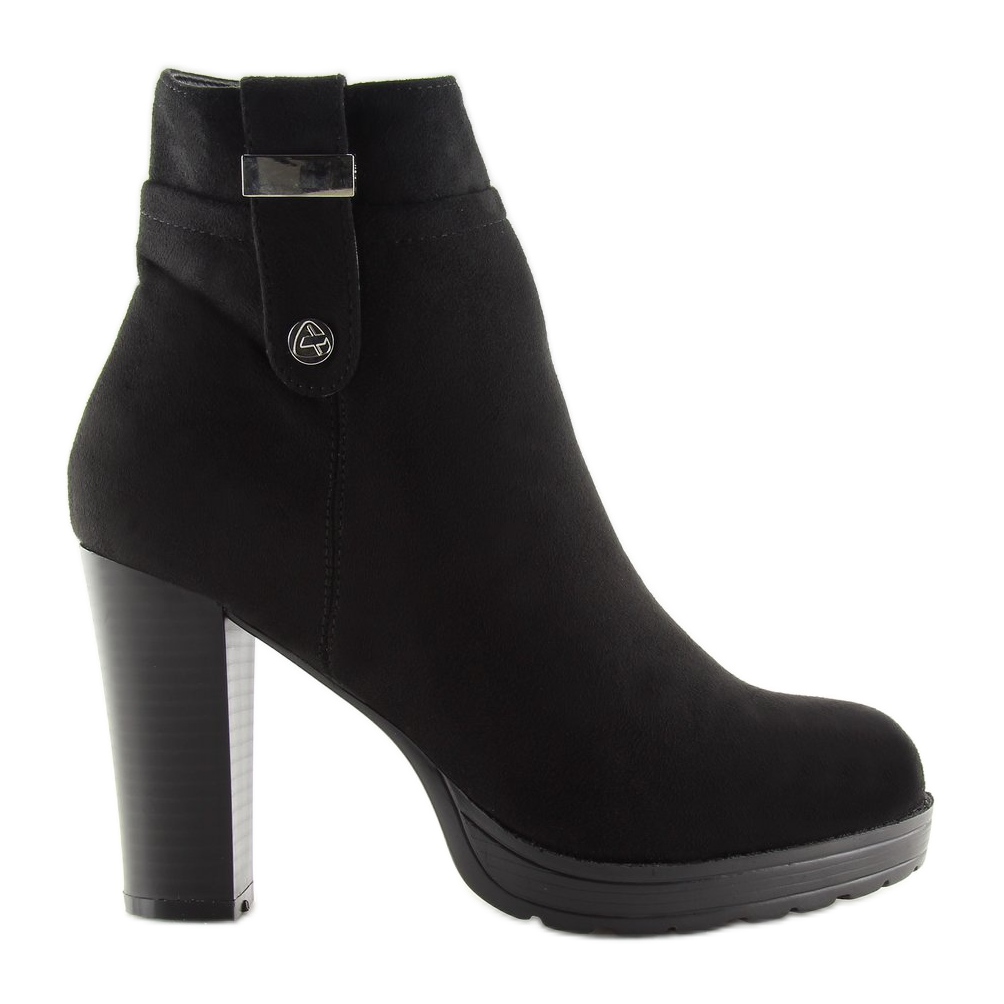 Představujeme stylové černé kozačky na vysokém podpatku BK3233 Black, které se stanou perfektním doplňkem vašeho šatníku! Tyto dámské kotníkové boty vyrobené z vysoce kvalitního ekologického semiše spojují eleganci a pohodlí. Rovný podpatek o výšce 9,5 cm báječně prodlouží nohy a dodá postavě ženský půvab.