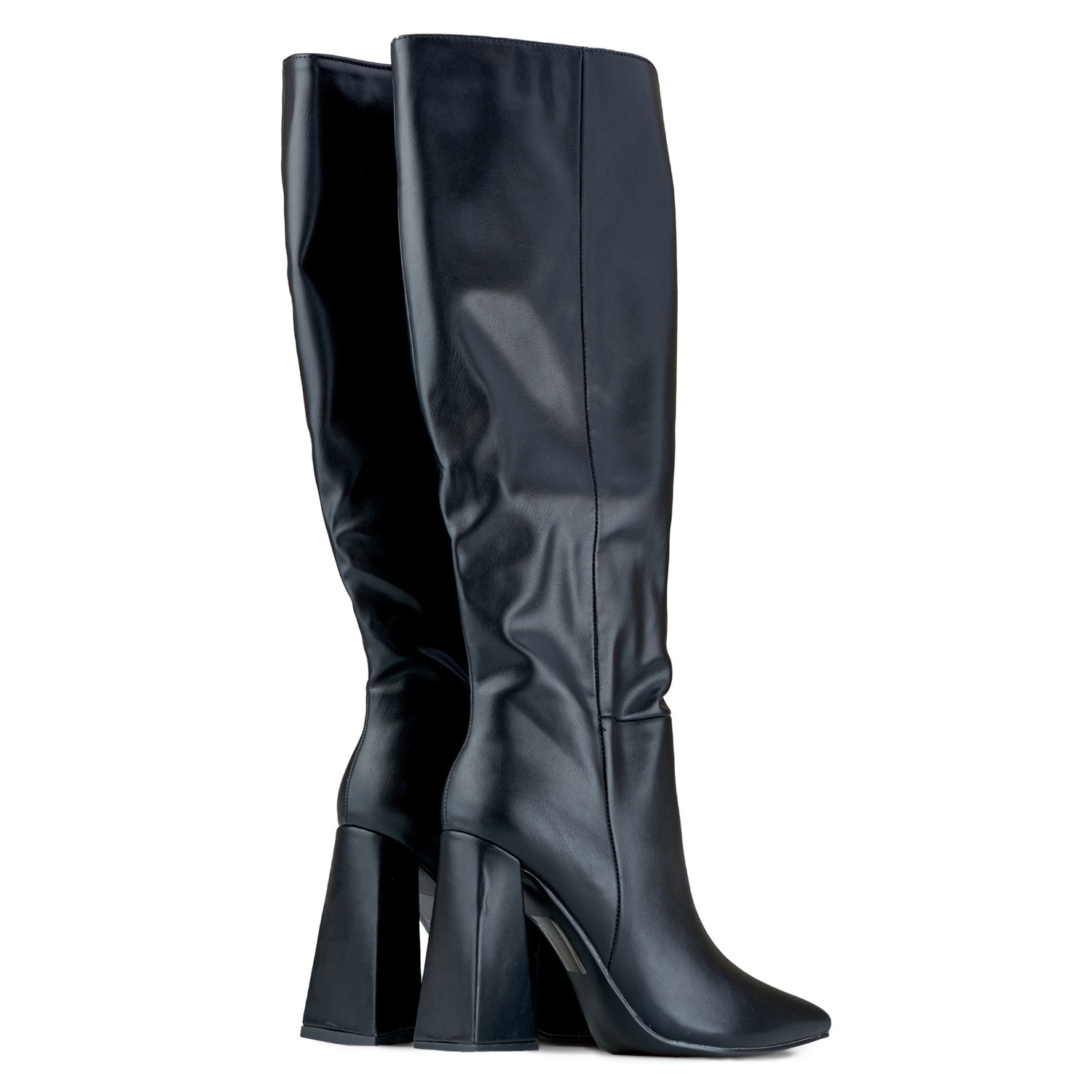 Podrobnosti: Černé kozačky na vysokém podpatku vyrobené z ekokůže černá