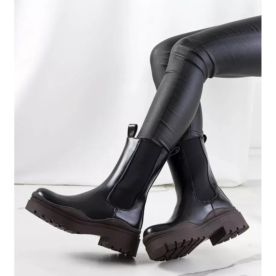 Černé kozačky s hnědou podrážkou značky Nester černý