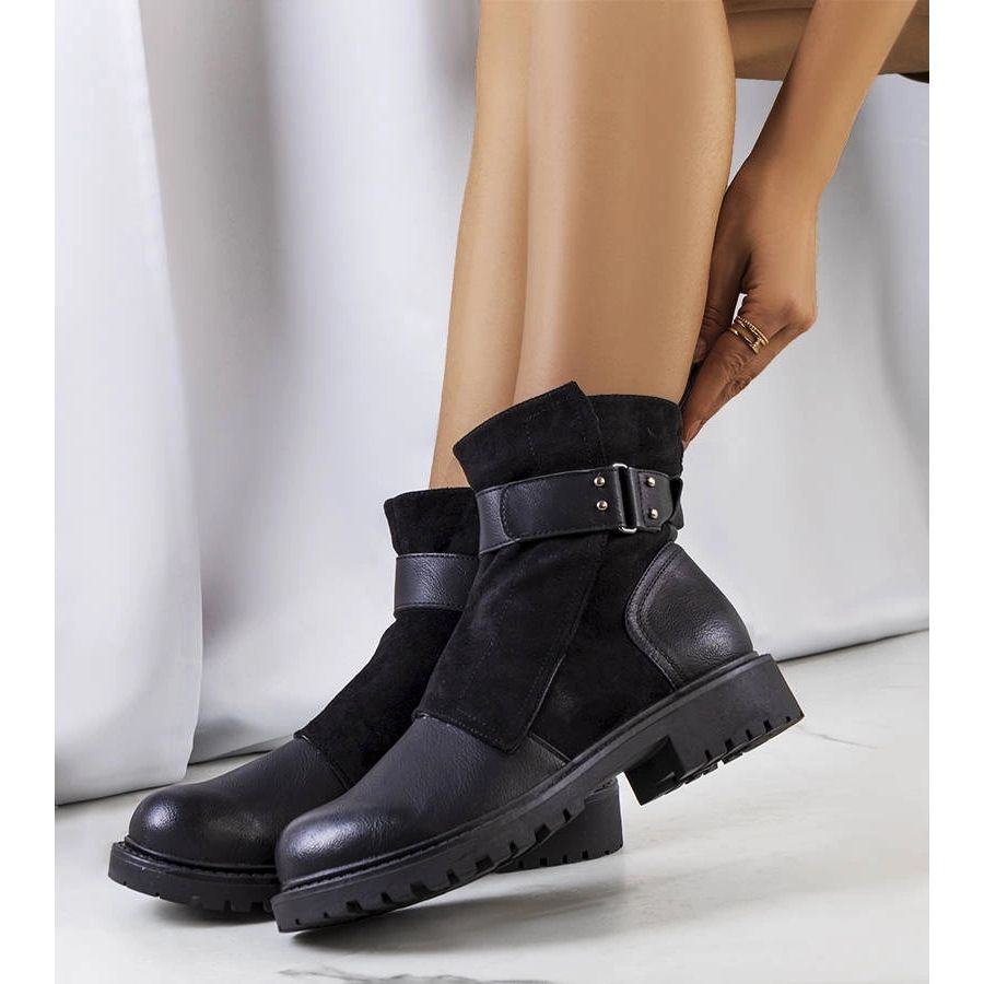 Black Kevin boty se zaobleným nosem kombinuje syrovou městskou postavu s ženskou jemností. Horní část je vyrobena ze dvou materiálů: spodní část permanentního ekologického pokoje, horního s měkkým ekoseletem. Uzavřeno na masivní podrážce s běhounem a čtvercovou patou (přibližně 5,5 cm), zevnitř se zevnitř. Na vnější straně jim dekorativní popruh dává zajímavý přízvuk. Mírně izolované - ideální pro sezónu podzim/zimy.