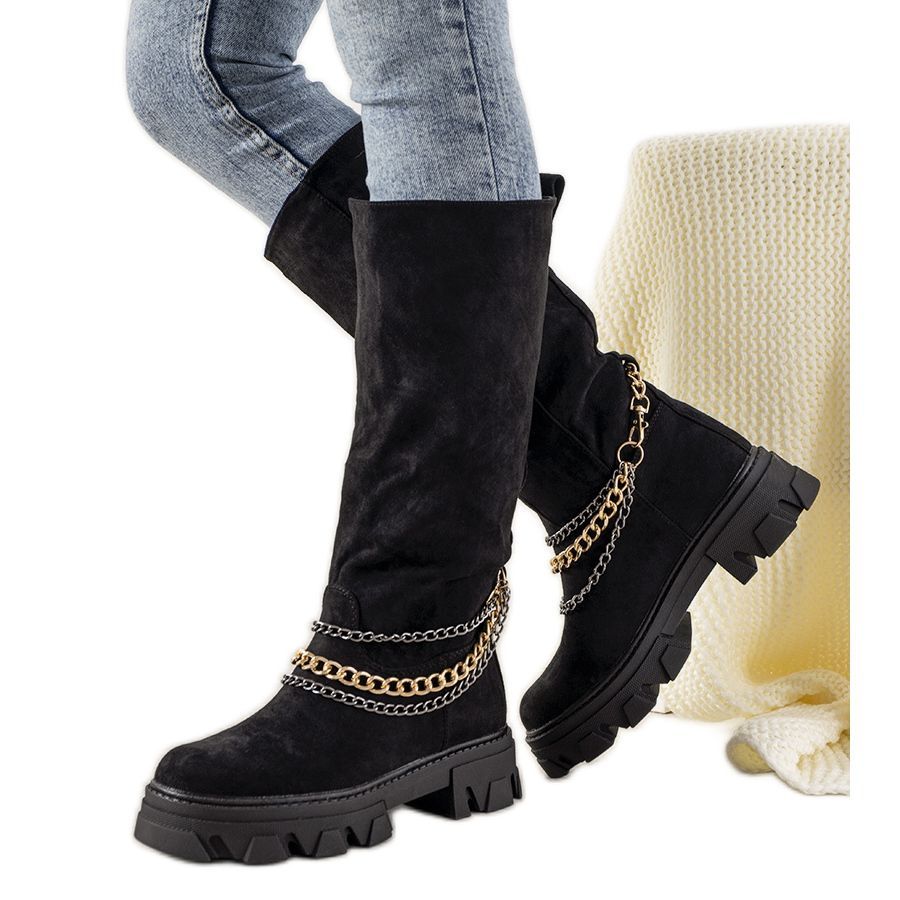 Podrobnosti: Černé kozačky se sobotním řetízkem černý