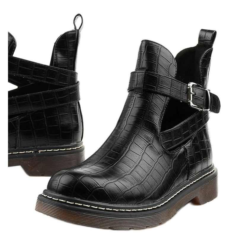 Černé kotníkové boty Nillda s přezkou jsou perfektní volbou pro moderní ženy hledající eleganci v kombinaci s trochou avantgardy. Svršek z ekologické kůže zaujme strukturou připomínající hadí kůži, která jim dodává jedinečný charakter. Díky odhaleným kotníkům a jemnému zapínání na přezku tento model kombinuje styl a pohodlí a dokonale odpovídá trendům sezóny.