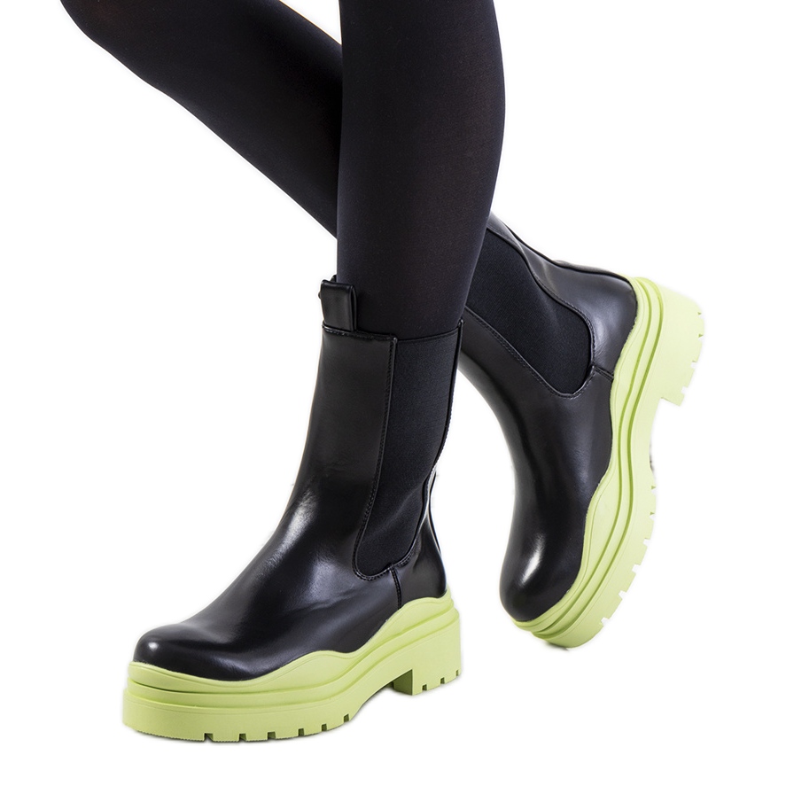 Podrobnosti: Černé kozačky se zelenou podrážkou Nester černý