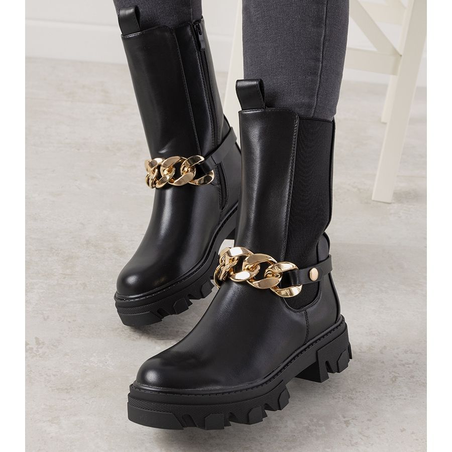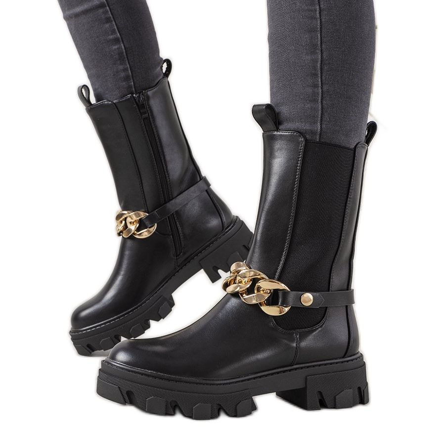 Podrobnosti: Černé kozačky se zlatým řetízkem od Luce černá