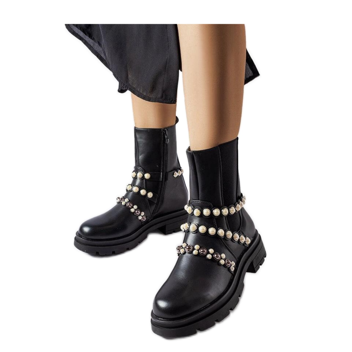 Černé kozačky zdobené perlami černý