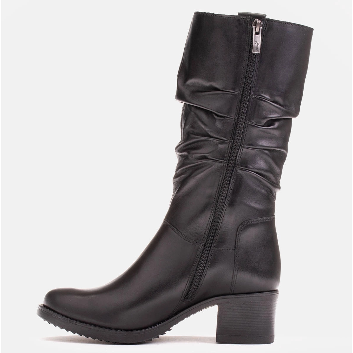 Černé dámské kozačky značky Marco Shoes, model 0812b-001-3, vyrobené z nejkvalitnější přírodní kůže.