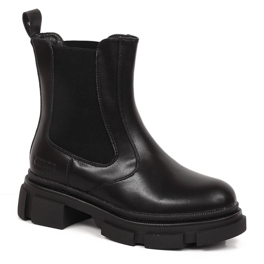 Big Star Černé kožené boty Jodhpur s černou zateplenou Big Star KK274485 černá
