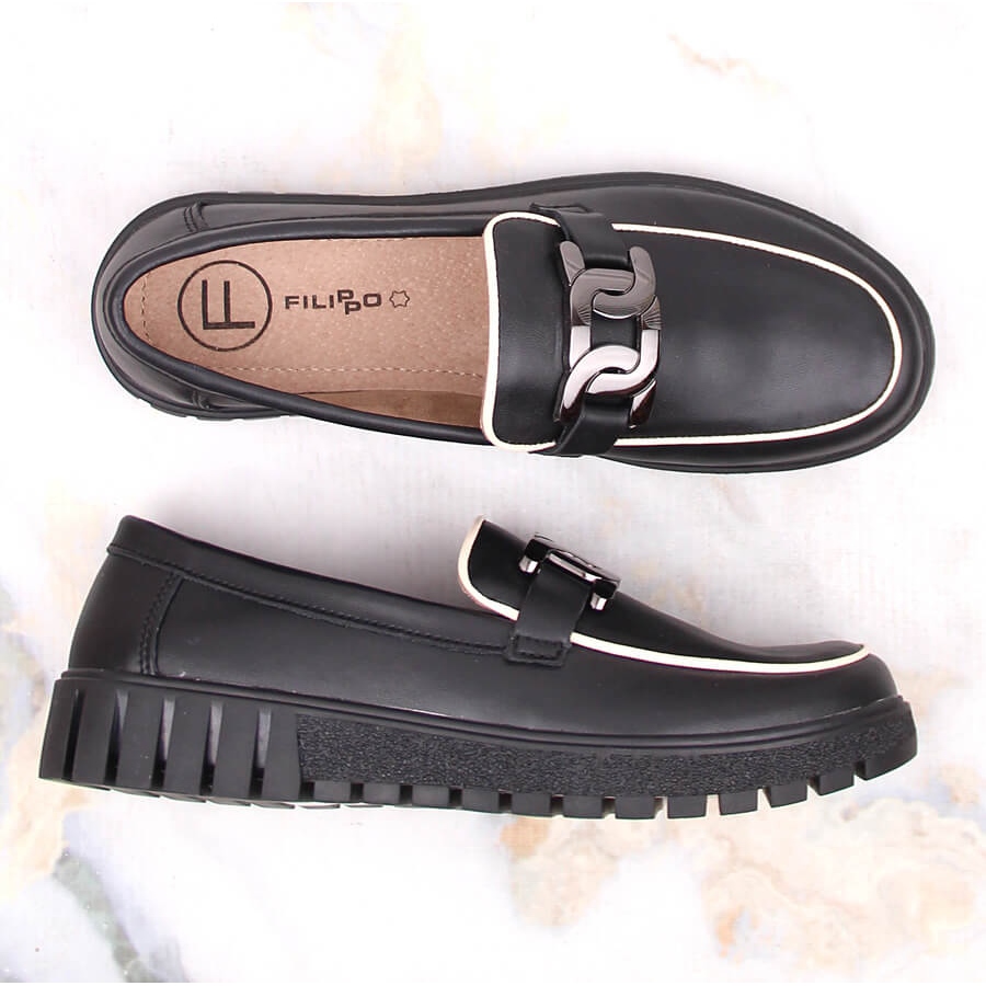 Elegantní a pohodlná bota od Filippo DP4728 je návrh pro ženy, které si cení klasického řezu s módním přízvukem. Vyrobeny z vysoce kvalitní přírodní kůže kombinují univerzální černou s jemnou dekorací ve formě kovového řetězce na platformě - ideální pro každodenní a formálnější styly.