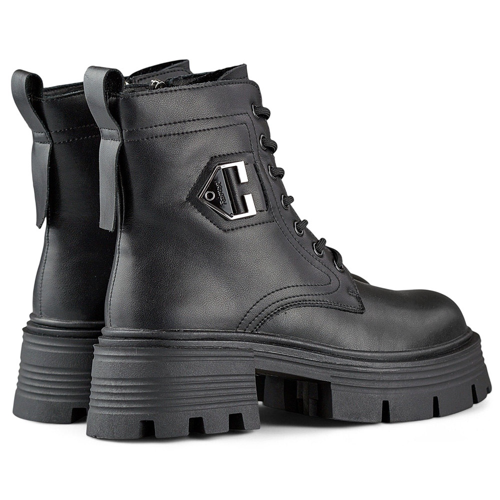 Inna marka Černé kožené dámské kotníkové boty na platformě, zateplené kozačky z přírodní kůže černá