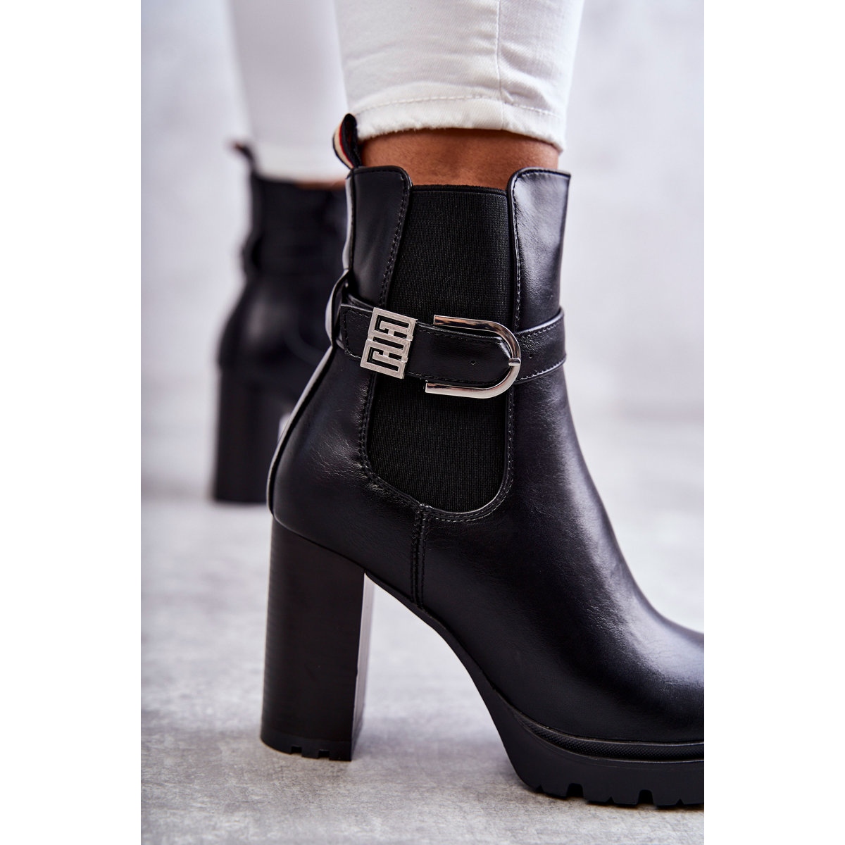 FE1 FE1 Černé kožené kozačky Maresol na sloupku s ozdobným páskem černá