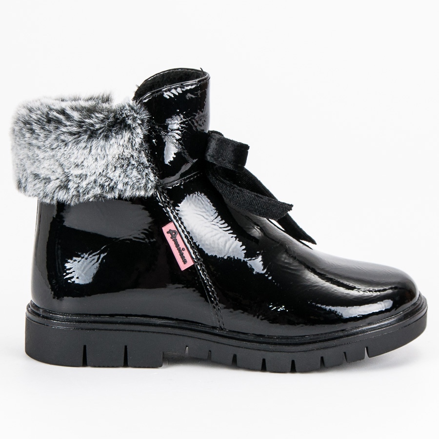 Černé patentované kotníkové boty American Club - styl a pohodlí pro dívky