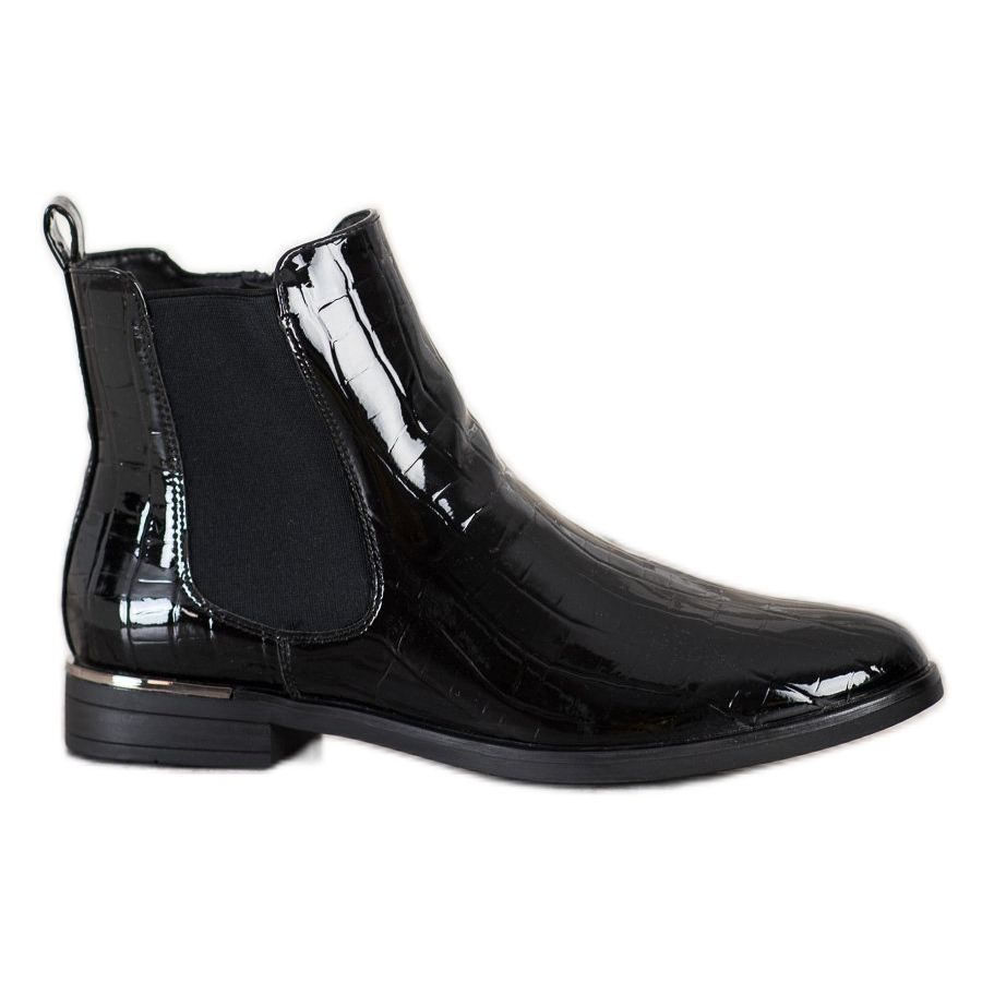 Boty Chelsea vyrobené z ekologické kůže se vyznačují lakovanou úpravou, která jim dodává jedinečný lesk. Mandlová špička a vybudovaná měkká pata činí boty nejen estetickými, ale také extrémně pohodlnými na nošení. Díky izolaci a vnitřnímu materiálu ze 100% textilie budou vaše nohy v teple a příjemně i v zimních dnech.
