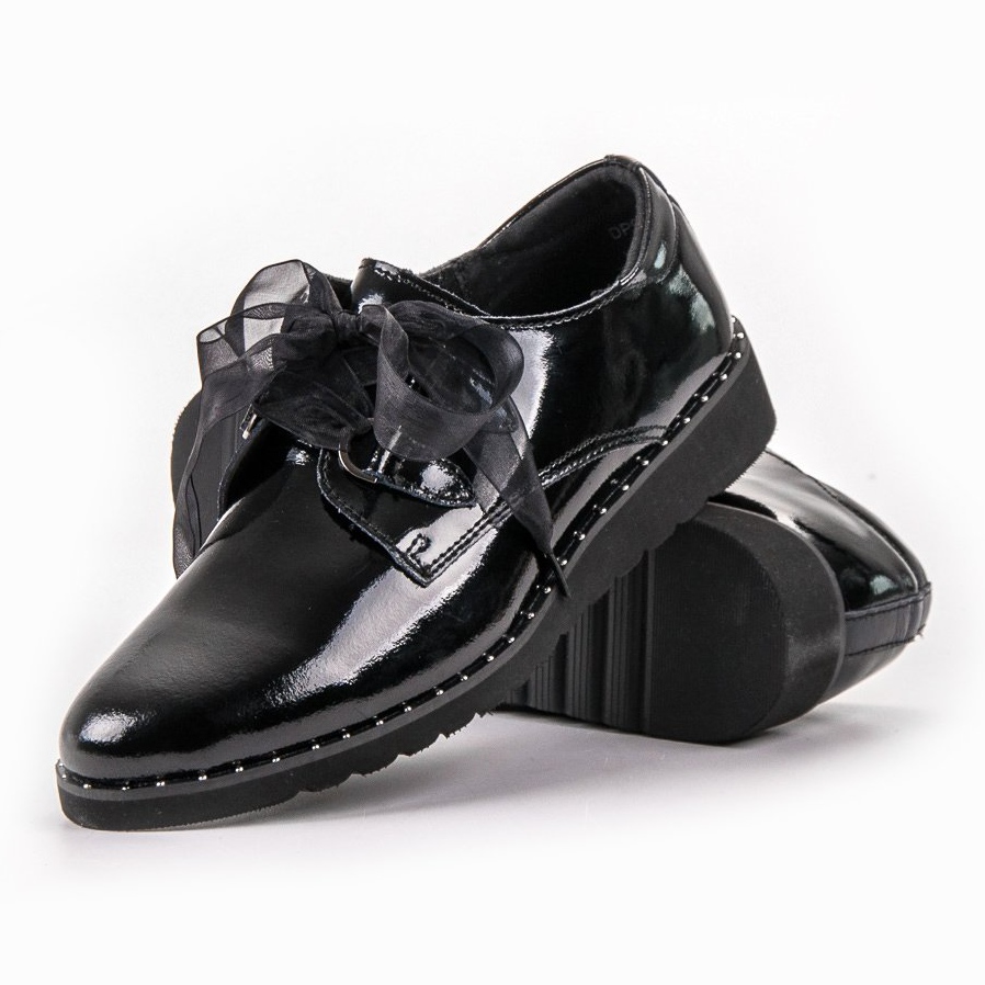 Černé lakovky se vyznačují plochou, pěnovou podrážkou s nášlapem, která zajišťuje dobrou přilnavost a stabilitu. Díky výšce platformy 3 cm boty opticky prodlouží nohy, aniž by utrpěly pohodlí. Další detaily v podobě kamínků jim dodávají módní, ležérní charakter, díky čemuž jsou perfektní volbou pro různé příležitosti - od každodenních až po večerní výlety.