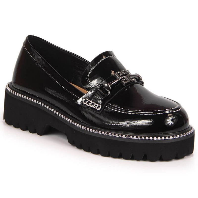 Boty se vyznačují nízkým modelem, díky kterému se skvěle hodí k mnoha stylům. Vyrobeny z vysoce kvalitní ekologické kůže poskytují nejen atraktivní vzhled, ale také odolnost. Lakovaný svršek jim dodává charakteristický lesk, který přitahuje pozornost. Kulatý nos dodává jemnost a kamínky jako další dekorativní prvek dodávají punc originality.