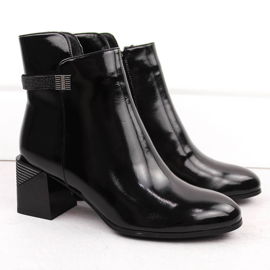 - Modelka: Dámské lakované kotníkové boty s ozdobným podpatkem