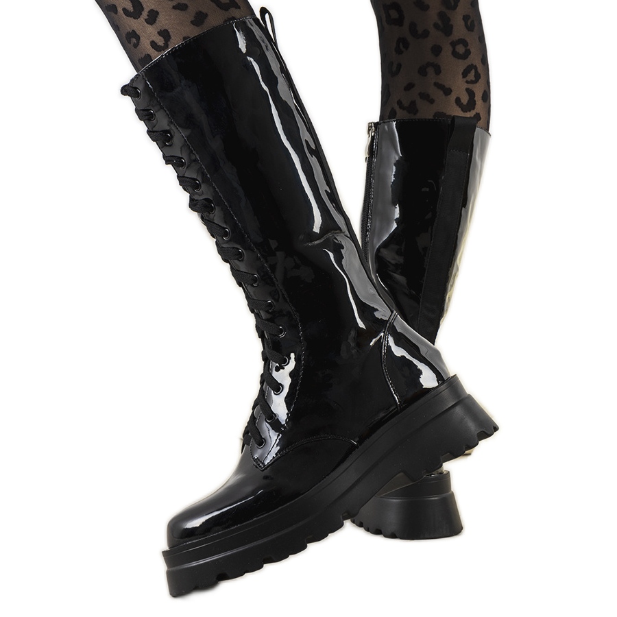 Černé lakované kozačky Fora černý