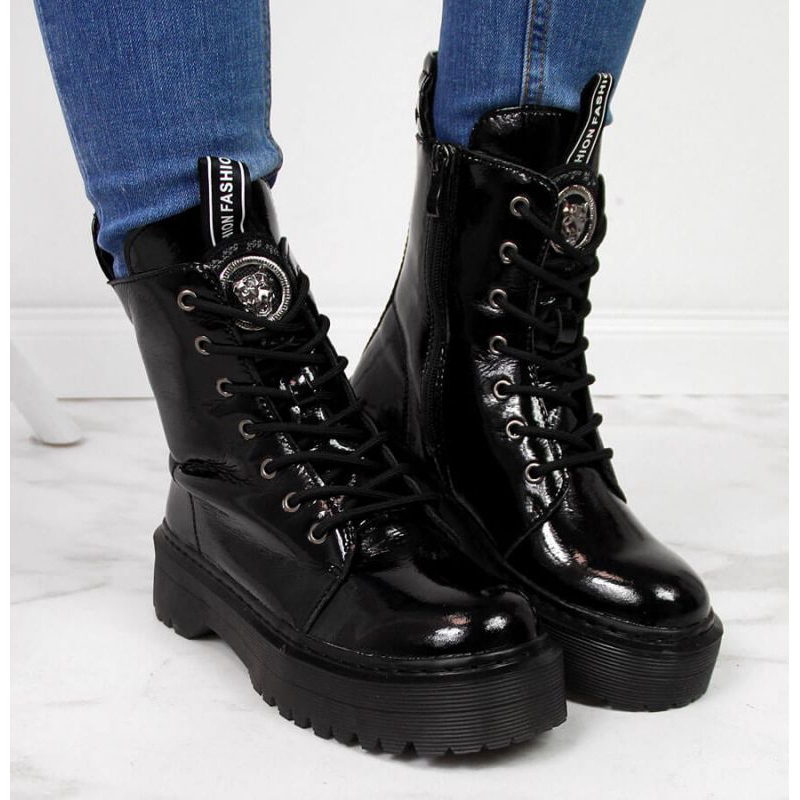Černé lakované kožené boty Filippo W PAW297