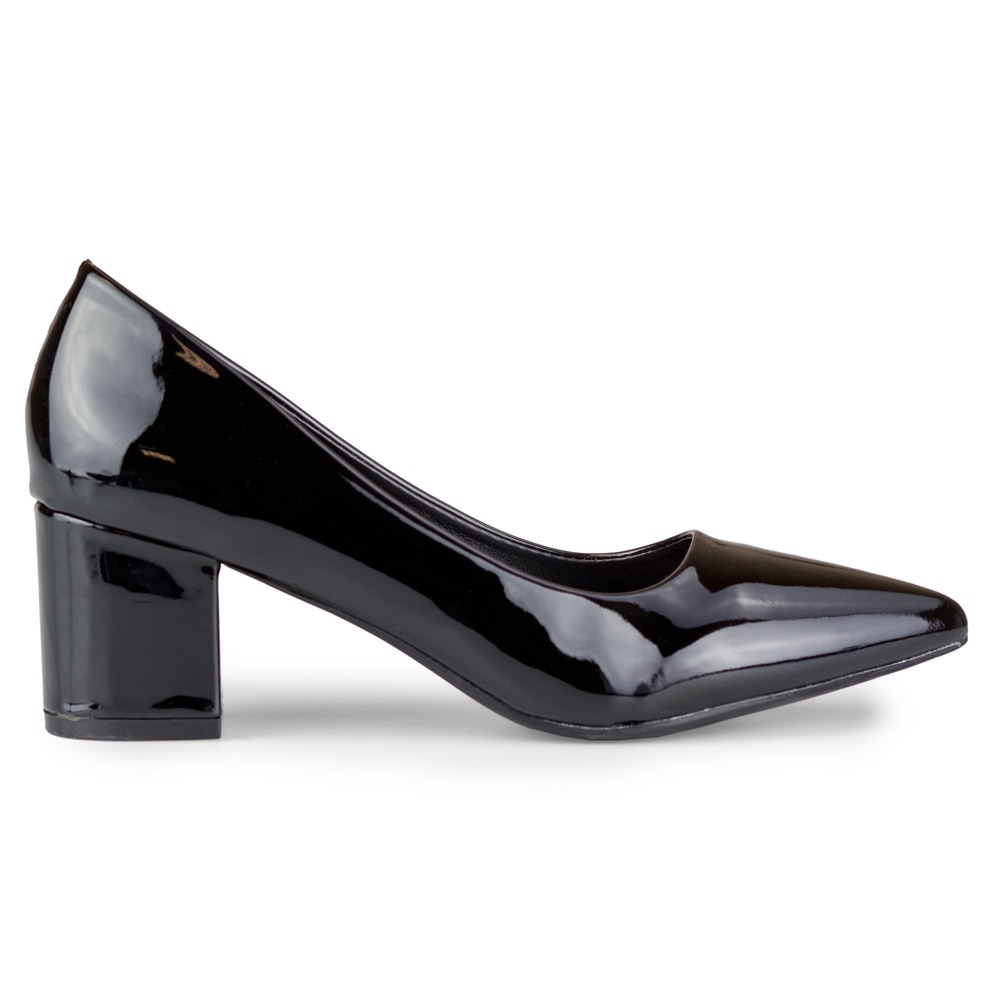 Podrobnosti: Černé lakované lodičky na nízkém podpatku černý
