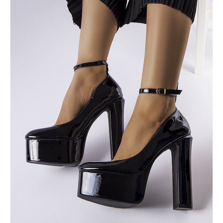 Inna marka Černé lakované lodičky na vysokém podpatku od Colle černá