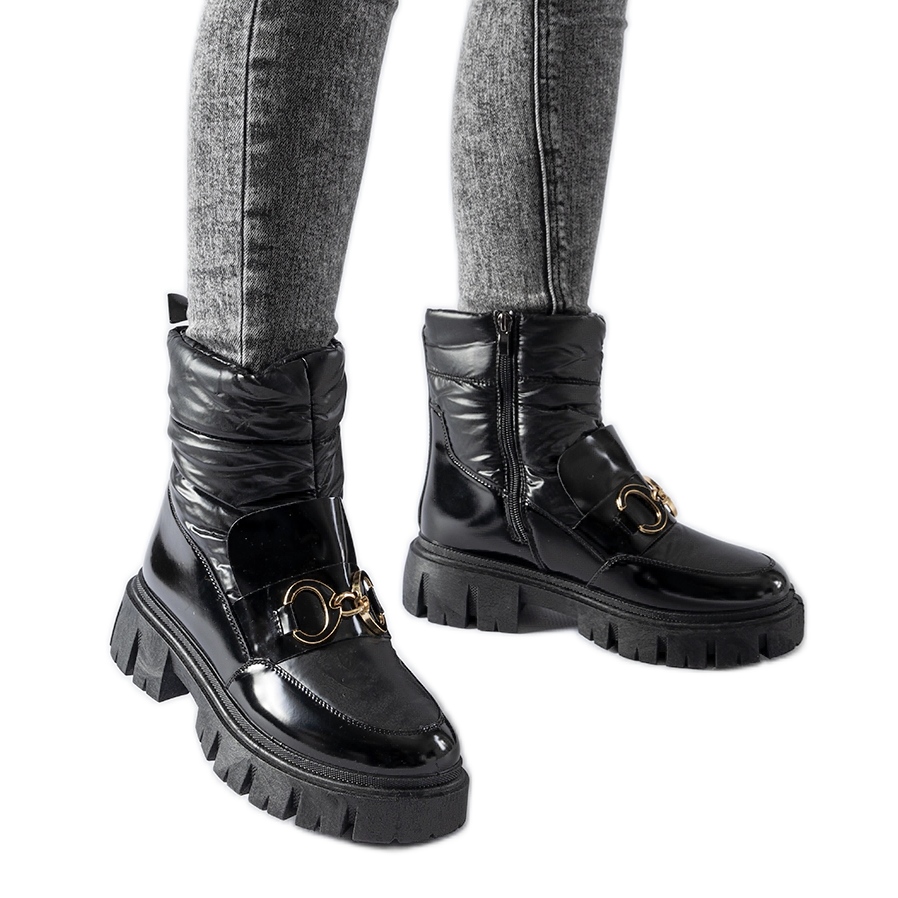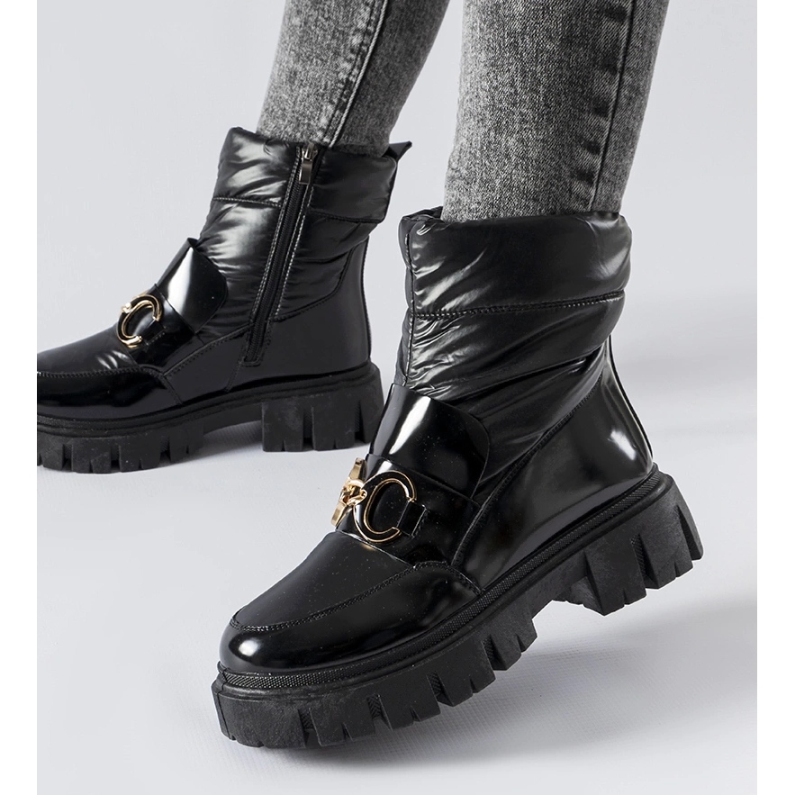 Černé lakované sněhule se zimní přezkou černý