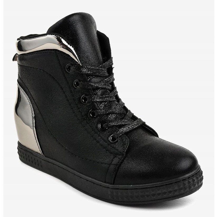 Černě lakované tenisky na klínku R469-2 černý