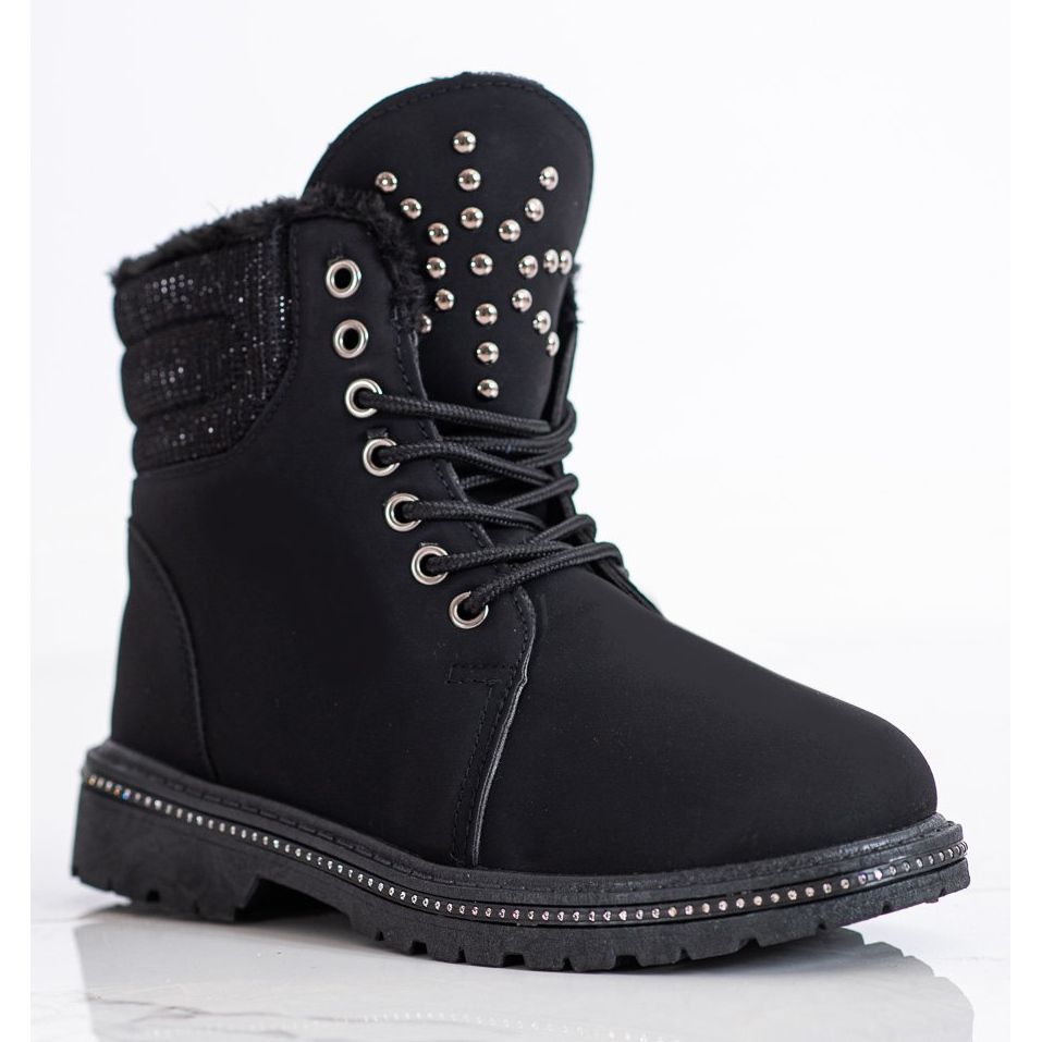 Díky šněrovacímu zapínání a zipu je perfektně přizpůsobíte noze. Horní výška 12-13 cm a šířka 24 cm zajistí mimořádný komfort nošení. Tyto černé kozačky musí mít každá žena, která každý den ocení módní ležérní styl.