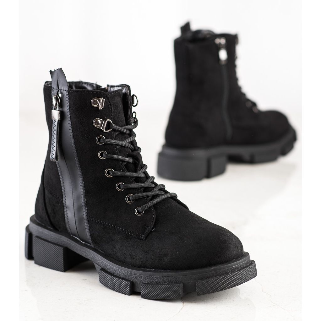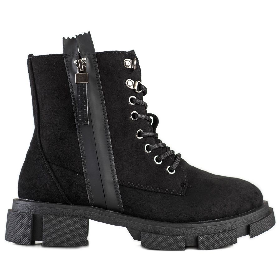 Boty jsou vyrobeny z vysoce kvalitní imitace semiše, jsou odolné a atraktivního vzhledu. Charakter jim dodává ozdobný zip, díky kterému snadno zapadnou do ležérního stylu každé ženy. Díky zipu a dodatečnému šněrování se boty snadno nazouvají a perfektně sedí na noze.