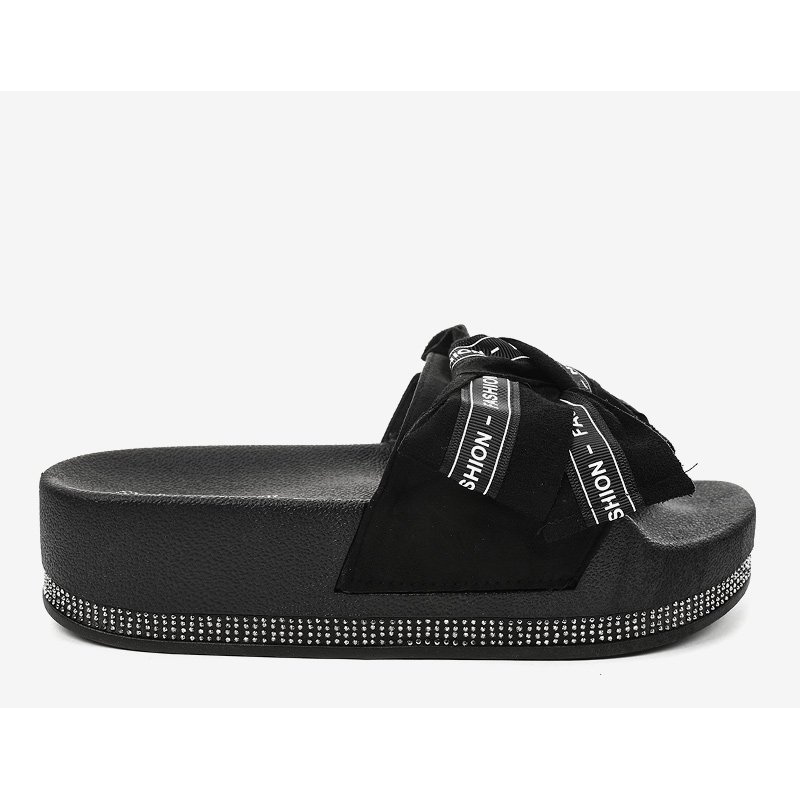 Další výhodou jsou ozdobné mašle ze semiše a černobílé stuhy, které dodávají žabkám jedinečný styl. Díky nazouvacímu uzávěru se snadno nazouvají a svlékají, takže jsou ideální pro každodenní použití.
