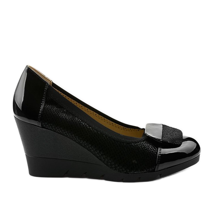 Černé lodičky na klínku Downreaver jsou perfektní volbou pro ženy, které oceňují eleganci a klasický styl. Tyto boty vyrobené z vysoce kvalitní černé ekokůže mají jemný vzor hadí kůže, který dodává jedinečný charakter. Lakované špičky a paty jsou perfektním doplňkem celku a dodávají lodičkám módní vzhled.
