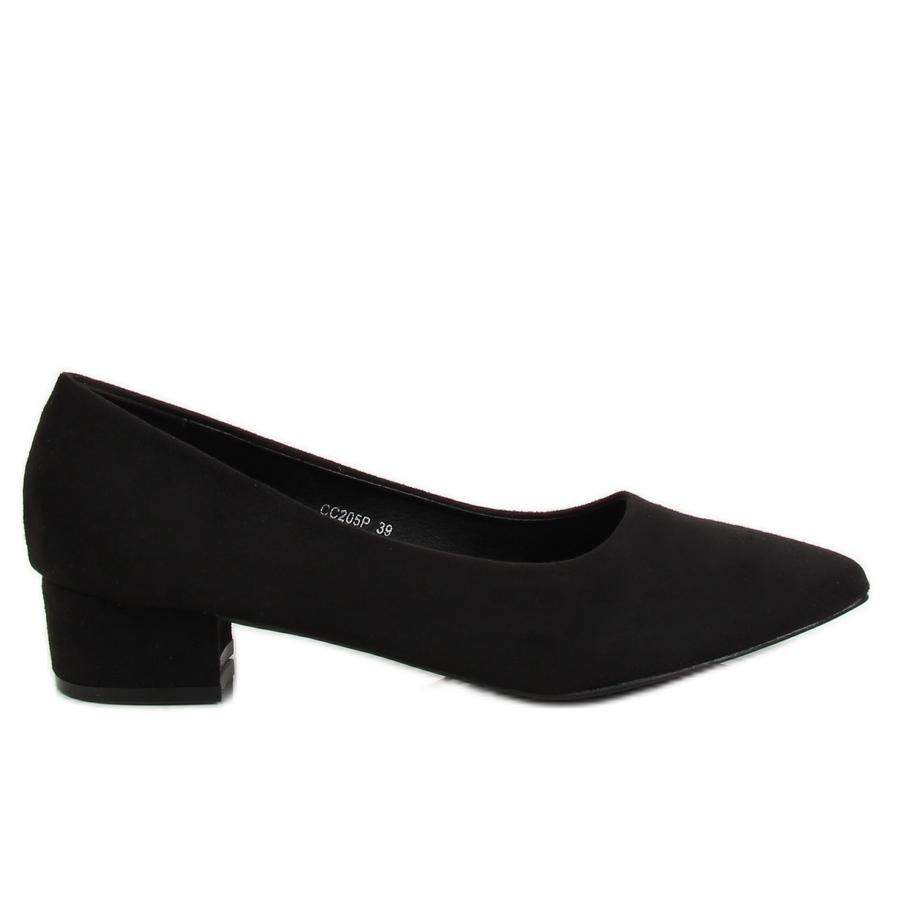 Černé lodičky na nízkém podpatku CC205P Black jsou ideální volbou pro ženy, které oceňují eleganci a pohodlí při nošení. Jsou vyrobeny z ekologického semiše a vypadají mimořádně stylově a díky klasické černé barvě se hodí k mnoha stylům - formálním i neformálním.